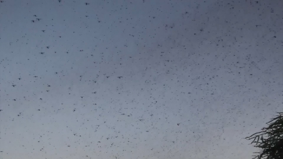 白茫茫的一片,幾乎遮蔽了天空,這就是蝗蟲過境的恐怖景象。估計蝗蟲群至少盤據了地表以上十二公尺的高度。蝗蟲飛過的農田,把所有作物,全都一掃而空。這片燕麥田,原本麥子已經長到40公分。在蝗蟲過境後,什麼都不剩。眼看即將收成的血汗成果,一夜之間,全部歸零,這個農民,真的欲哭無淚。
