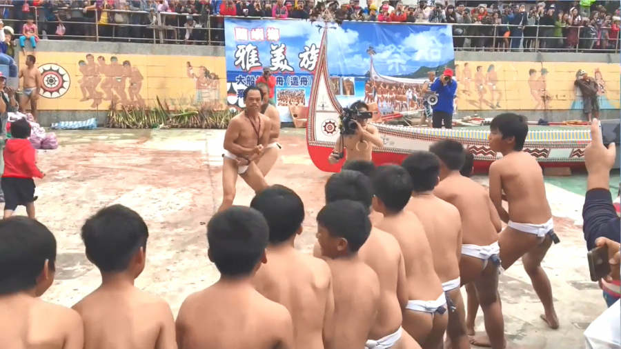 其實在這一次,在淡水對岸,八里的米倉國小,也有一架80多年歷史的蘭嶼達悟四個人坐的拼板舟,就等在那裡,要迎接這架18人大船。