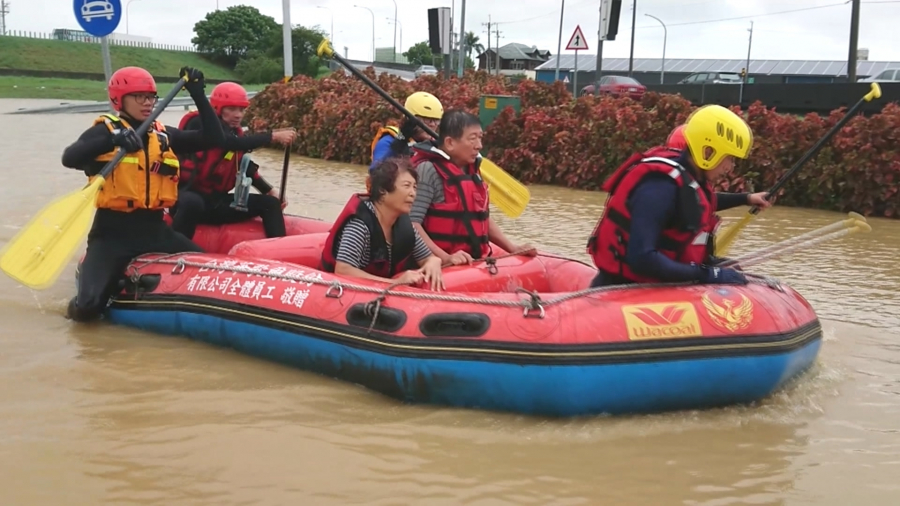 居民拍下溪水暴漲,漫過河道的畫面,眼前已經分不清道路和河道,位在高雄杉林大愛村小林區,是部分小林村民災後安身處,12號中秋節下午三點多,短短半小時的降雨,竟然就讓家門前成了小河。