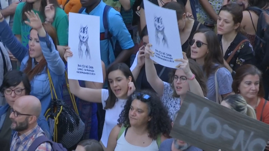 岸上的群眾舉著西班牙國旗,呼喊支持口號,