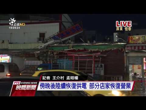 強風吹來也讓恆春地區電線被吹斷,龍水里居民上次莫蘭蒂颱風才吹壞整排電線杆,連電信網路都斷,三天前才通,中午過後風速轉強,又讓當地幾十戶人家,沒電沒網路。