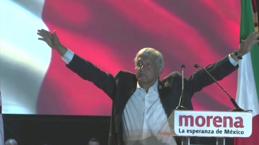當計票結果陸續傳來,墨西哥左派政黨「國家復興運動黨」的支持者,在競選總部外歡欣鼓舞。初步的計票結果顯示,國家復興運動黨候選人歐布拉多,以百分之52.48的得票率,遙遙領先所有對手。確定當選的歐布拉多,隨即在競選總部發表勝選感言。除了強調選後要全國大和解,也宣示未來新政府的首要任務。