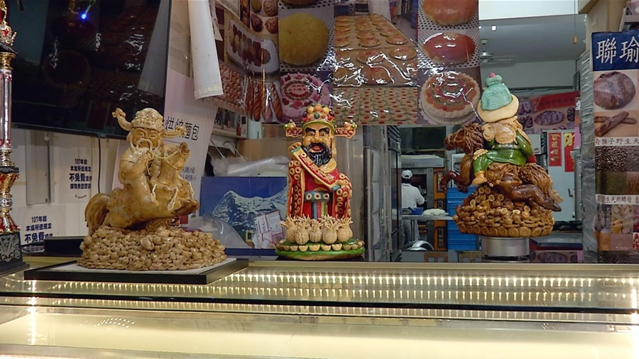 The bread statue isn't Chang's only creation. He also made an artistic pastry piece in the likeness of Caishen, the ancient Chinese God of Wealth. Chang even made 200 individual gold ingots to decorate the base of the statue. He experienced a number of failures when trying to create smaller parts. And he has to take the local moisture level into consideration while strictly controlling the time and temperature of the pastry to make the shapes he wanted.