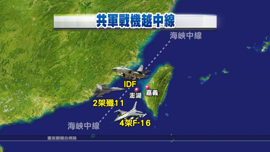 昨天台灣海峽上空一度出現緊張局面,有2架共軍殲11戰鬥機在上午11點左右在台海西南部空域、飛越海峽中線,國軍立刻派出在空偵巡的IDF經國號戰機前往攔截、4架F16戰機也緊急升空,並且以無線電喊話驅離,雙方對峙10分鐘後、共機就返回。總統府譴責中國蓄意挑釁、公然破壞兩岸現狀,陸委會則認為北京當局變本加厲,加大對台政軍攻勢威逼統一。