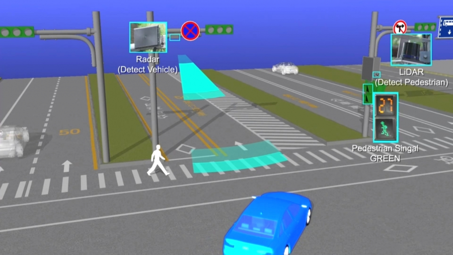 在路口裝設感測器,利用車載短距無線通訊技術,讓車對車、車對路直接通訊,偵測視線以外的人車狀況。同時還設置大型電子看板,以亮燈和圖文,警示民眾注意左右來車,如果想闖紅燈,也會直接被提醒。這樣的設計,獲得創新界奧斯卡獎「愛迪生獎」肯定,奪下銀牌獎座。