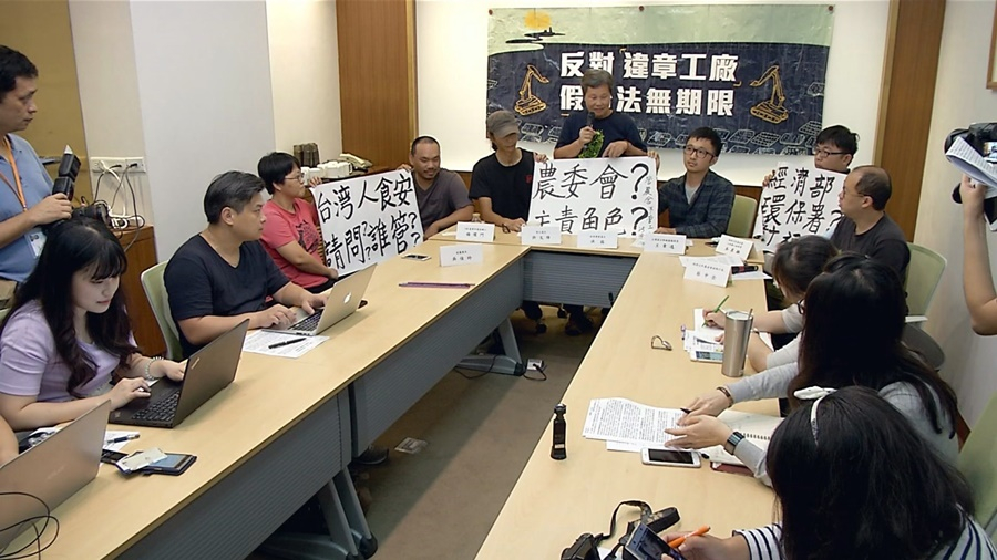 以「田園工廠」自稱,農地違章工廠業者的記者會上,不分藍綠立委出席力挺,但反對的團體不滿長年破壞環境的業者,如今宣稱合法後就會改善,所以應該支持他們合法,這根本是歪理。