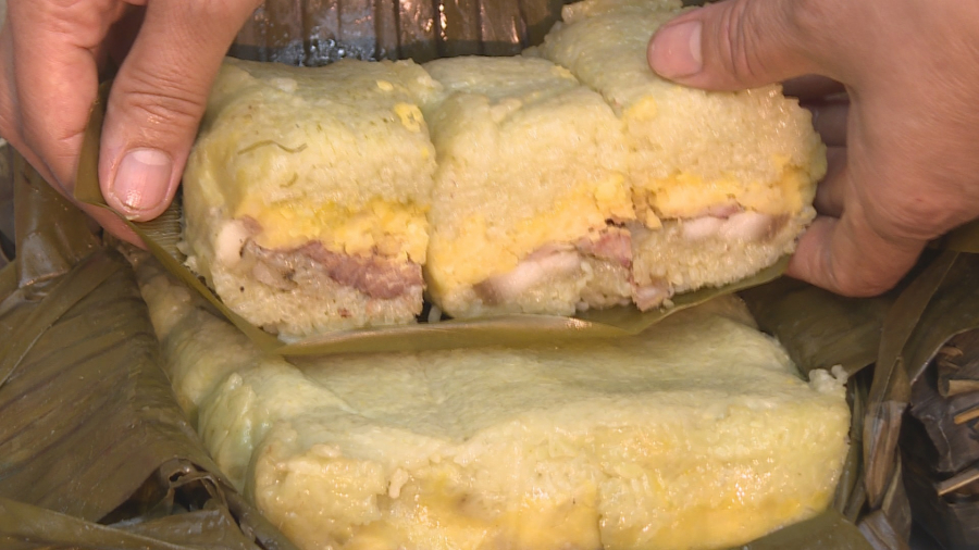 Imigran baru dari Vietnam // Ruan Qiu-yue:Beras ketan yang bundar,Kacang hijau dimasak matang sebelum ditaruh ke dalam,Dulu kami memang sering makan bakcang,Setiap keluarga harus memiliki bakcang,Siap dijadikan kurban persembahyangan