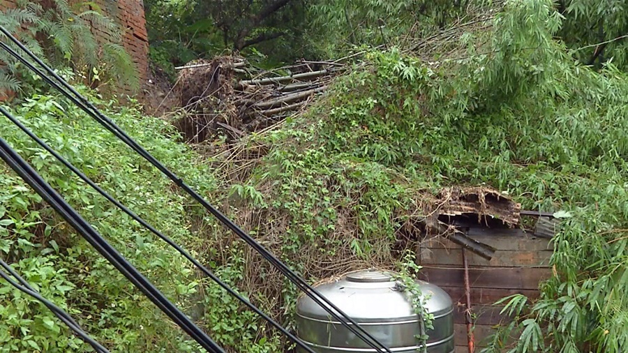 Heavy torrential rains fell in the Hsinchu area at 1 a.m. on June 14, and many floods were reported locally. One residence even fell prey to a landslide from above, scaring the owner so much he couldn't sleep all night.