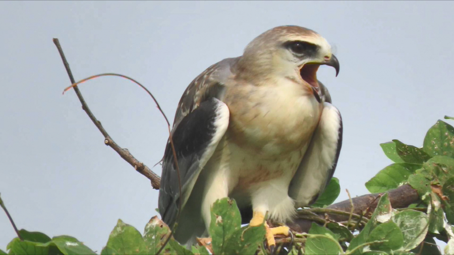 黑翅鳶是鷹科,在猛禽中體型比較小,屬於二級保育類動物,是一種冬候鳥,之前曾出現在嘉義縣鰲鼓溼地,三年多前也曾經看過他們出現在嘉義市,沒想到再次出現,就是孵育出雛鳥的情況。