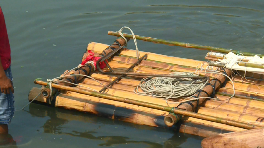由過去老一輩漁民,帶領學生剖竹、用火燻竹還將竹子排列好再紮綁,每一個程序都是循古法手工製的竹筏,現在已經很少見到,為了要找回歷史記憶,雲林四湖箔子寮社區,趁著暑假期間要教大學生製作過去的竹筏。
