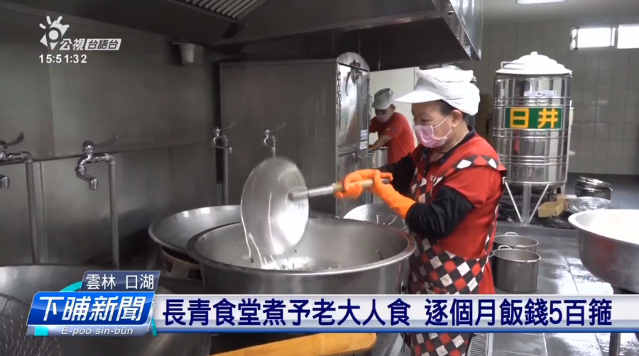 現在真濟所在開辦長青食堂,雲林口湖鄉就有專門提供長青食堂料理的廚房,目前負責7个長青食堂的餐點,毋過因為人力成本真懸,這陣希望有資源通鬥幫忙,通繼續提供在地的長輩好食閣溫暖的餐點。