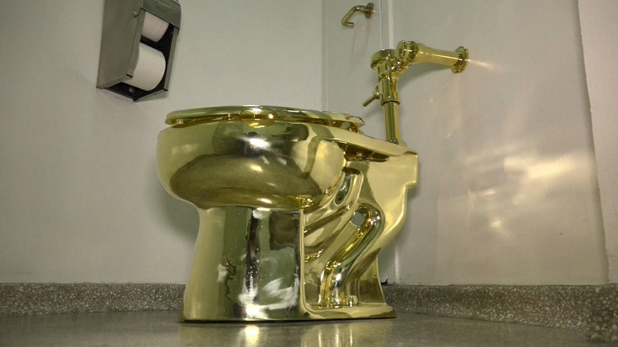 裝置藝術"黃金馬桶" 英國展覽予人偷剝去