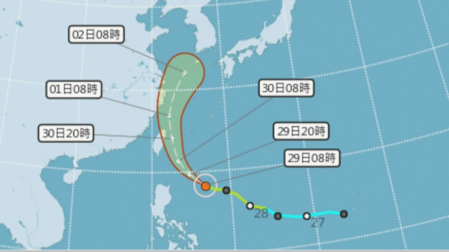 氣象局簡任技正謝明昌表示,「在明天的傍晚到晚上,會逐漸通過宜蘭近海這個地方,然後在10月1號的時候,會進入到台灣北部海面,如果這樣的移動的方向,跟速度沒有特殊變化,氣象局在今天晚上八點半,正式發布米塔颱風陸上颱風警報。」