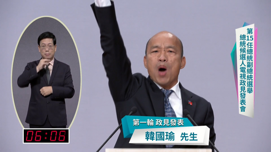 首場總統大選政見發表會,18號晚間落幕。國民黨總統候選人韓國瑜,會後受訪時強調,不會為自己打分數,但對總統蔡英文感到兩點失望。韓國瑜說:「網路的1450(網軍)楊蕙如這些人,又是民進黨養的,用民進黨養的這些網軍的資料來政見會,來質疑我、批判我,我覺得這一點我是非常遺憾。」