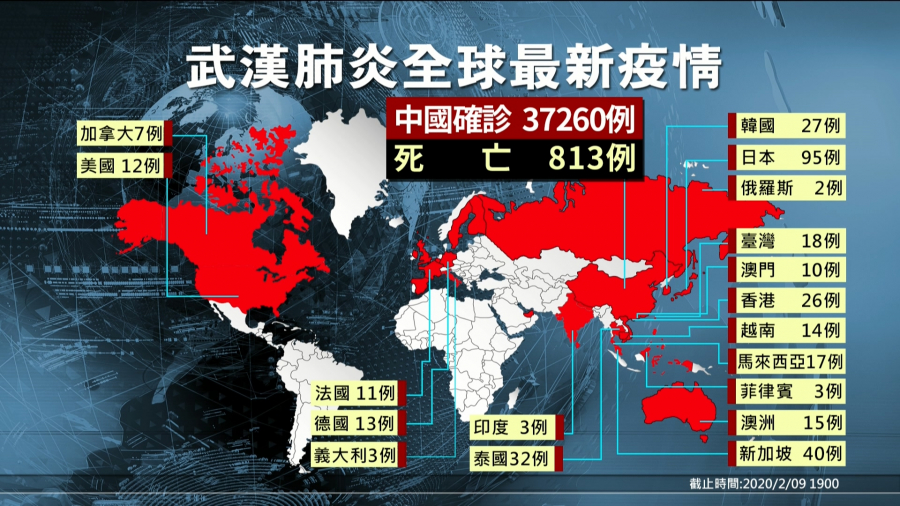 中國有3萬7260例,813人死亡、其中香港確診的病例有26例,澳門10例。另外在台灣,今天又新增加一例,總共18例,日本的病例,若加上在鑽石公主號的70例,總共來到95例,是亞洲病例最多的國家。續落去是新加坡40例、泰國32例、南韓27例、馬來西亞17例、越南14例,澳洲15例,印度和菲律賓,攏是3例。在歐美的部分,美國12例、法國11例、加拿大7例、德國13例。