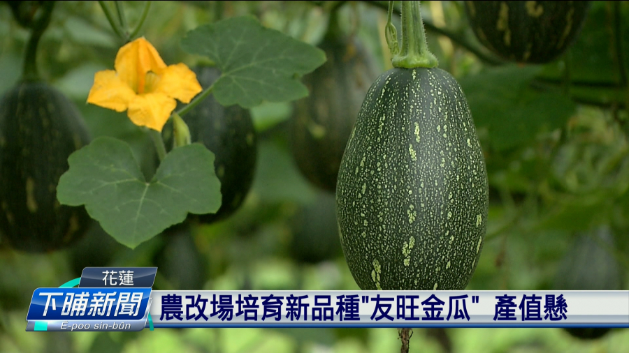 一般金瓜定因為天氣佮蟲害,影響產量和品質,花蓮農改場特別研發新品種的金瓜,予做友旺金瓜,經過幾若冬的實驗發現友旺金瓜較毋驚熱佮蟲害,而且收成好,今也開放予作穡人觀摩學種。