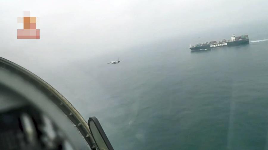 The People's Liberation Army's Eastern Theater Command has released a video of recent continuous flight training exercises with a high degree of difficulty. In the footage, an Evergreen Line cargo ship made a surprise appearance in the waters where the exercises were taking place, producing a curious image of Chinese fighters with a Taiwanese cargo ship.