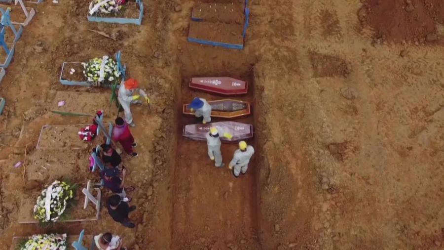 Jumlah penderita di Brazil berada di posisi ketiga tertinggi di dunia. Sejak kasus pertama yang dilaporkan pada bulan Juli, jumlah penderita telah mendobrak 4,7 juta orang dengan korban tewas 142.000 orang. Hingga kini situasi pandemi tidak menunjukkan tanda-tanda peredaan. Lokasi pemakaman di seluruh area dipenuhi dengan korban pandemi. Sebuah monumen dengan bentuk gelombang sepanjang 39 meter dibangun di pemakaman di kota terbesar kedua, Rio de Janeiro untuk mengenang para korban.