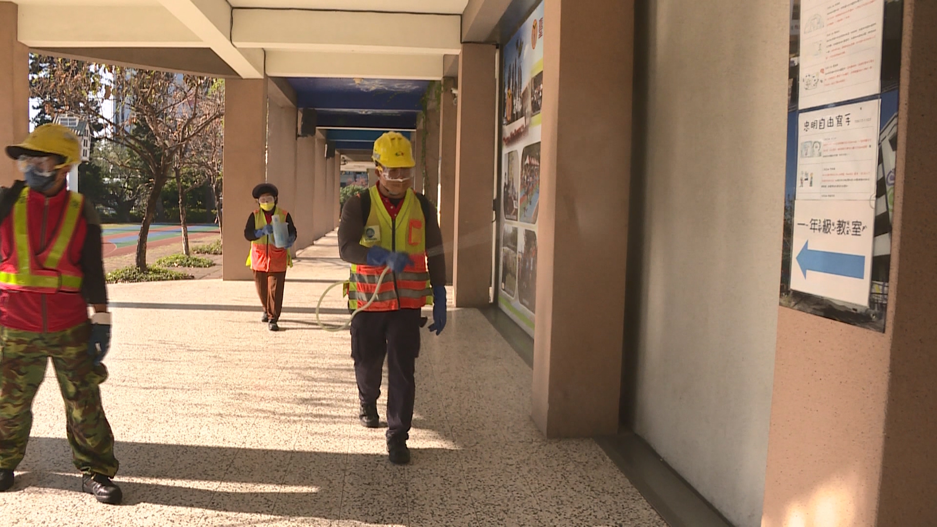 台北市環保局水質病媒管制科長彭富科指出,「開學前一周就已經規劃好整個台北市消毒的一個內容,我們預計在明天8月30日就會把台北市大概307所學校,做一個消毒完成,那今天的部分做完大概有完成9成。」