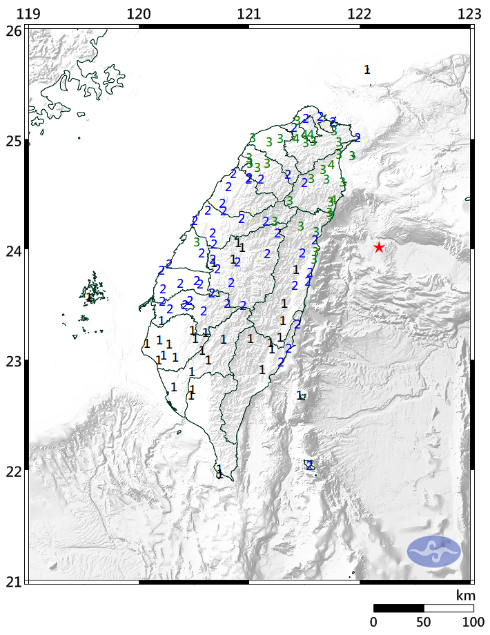 東部海域發生芮氏規模5.5地震 花蓮、宜蘭、台東等地最大震度3級