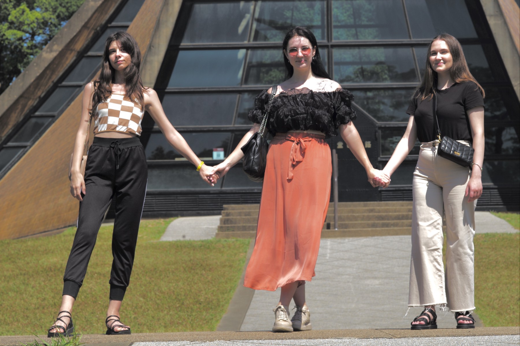 3位正值花樣年華的女學生,開心地在東海大學地標「路思義教堂」前自拍留念,她們都是「遠離戰火、來台求學」安置計畫全額獎學金的受惠者。現年20歲,來自烏克蘭西部大城利維夫的安娜佛斯科,想要以教中文為職業,選擇來台灣的理由是希望住在一個「民主與自由」的環境。