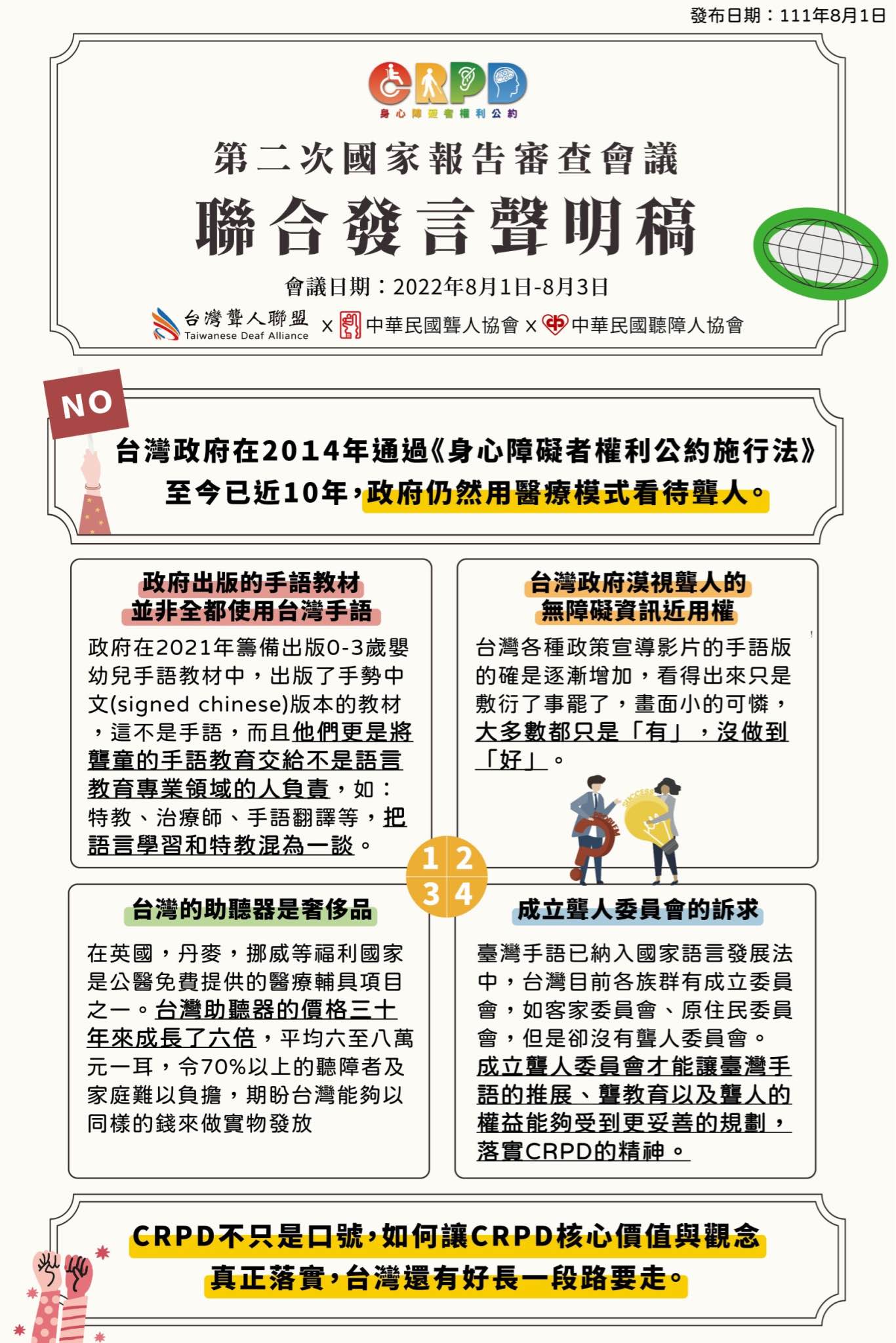 下圖為台灣聾人聯盟、中華民國聾人協會、中華民國聽障人協會聯合聲明。
