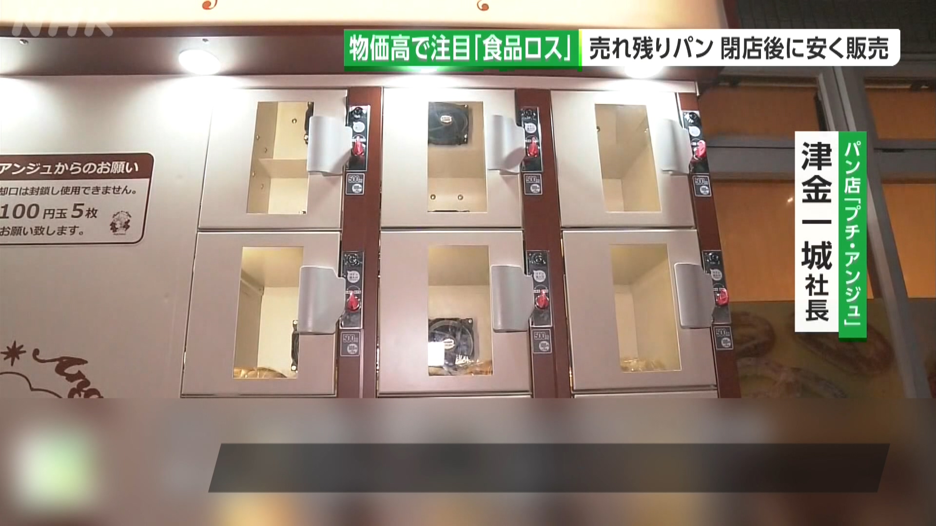 日本東京一間麵包店,晚間6時打烊後,開始打包架上的麵包,送到店外的自動販賣櫃。櫃內麵包的銷售時間,限定晚上7時到隔天早上7時,這些賣剩的麵包價格從700日圓降到500日圓。
