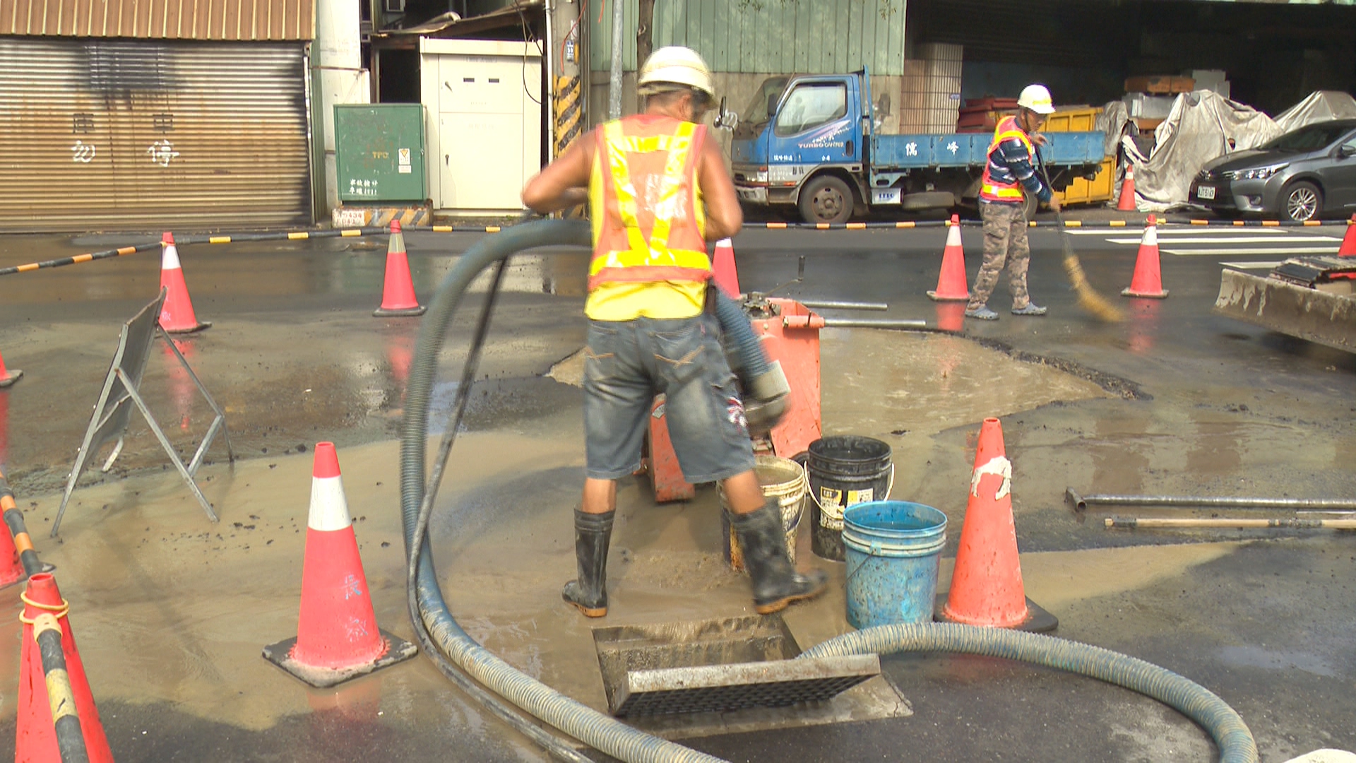 當地是人口密集區,路口車流量也相當大,所幸地點就在派出所斜對面,坍塌時剛好沒有人車經過,員警很快就封鎖路口協助交通疏導。自來水公司表示,破裂的自來水管已經使用41年,因太過老舊而毀損,工程團隊連夜搶修找尋漏水點。