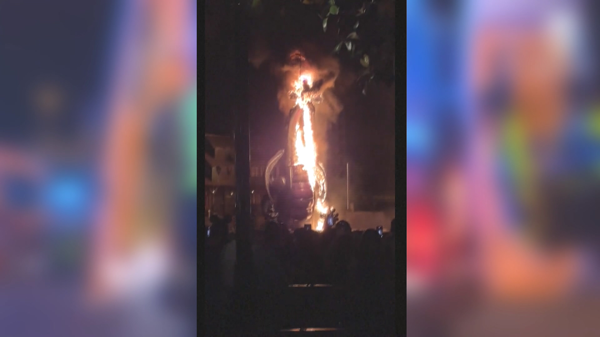 暗夜裡的海面上,火光燒得通紅。一艘原本停靠在白沙尾漁港的漁船,因為不明原因起火,整艘船全面陷入火海。熱心民眾協助拉繩控制船隻距離,避免一旁漁船也受到波及。