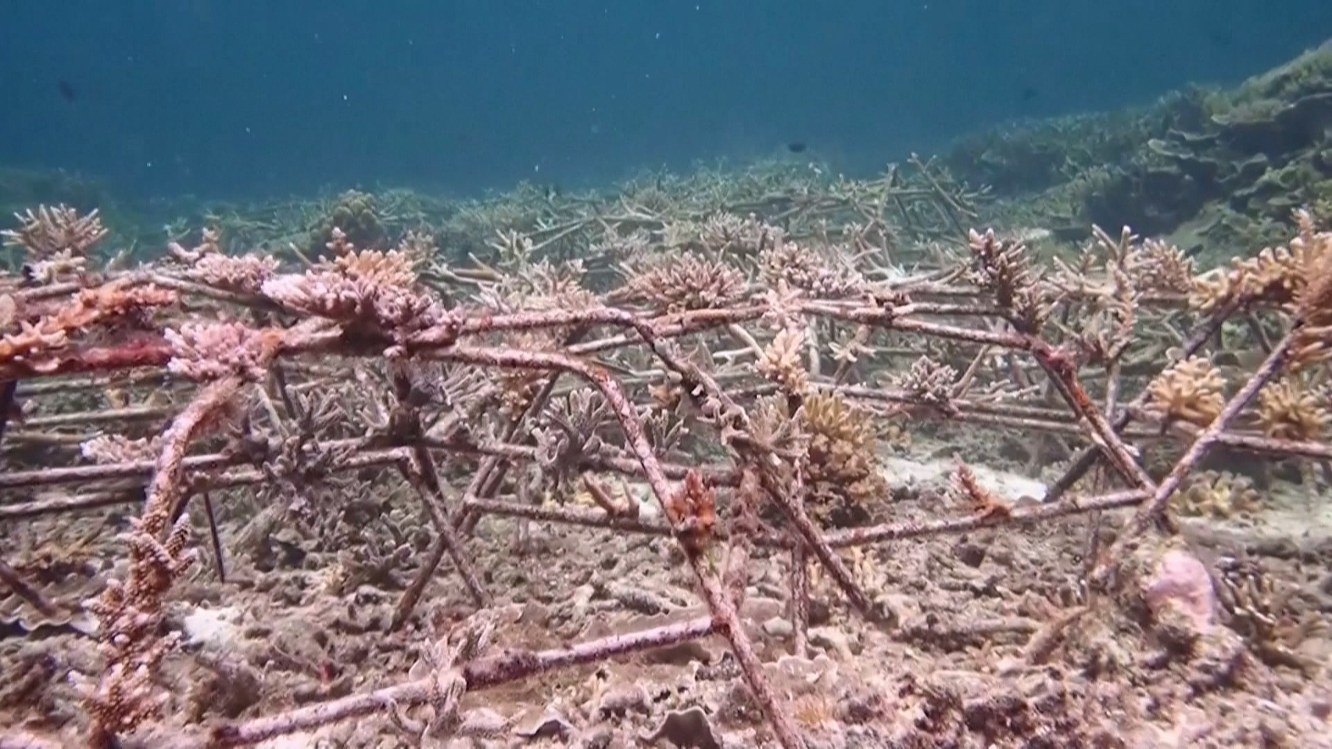 從珊瑚產卵受精繁殖開始做起,把蜘蛛型的框架結構放入海底,上面綁著珊瑚碎片讓它們生長。過去炸魚毒魚的盜獵者,變成生態守護者,長期紀錄並且細心照顧,已經慢慢看到荒蕪的海底回春,熱帶魚群穿梭在新生的珊瑚礁之間。