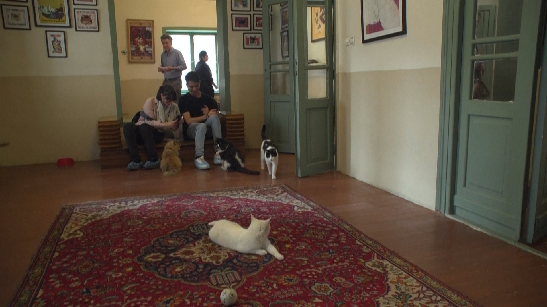 貓咖啡廳也是貓博物館,這棟兩層樓的建築如同會動的展覽間,民眾來喝咖啡還可以與貓互動,並捐贈經費給博物館,讓流浪貓有個家。