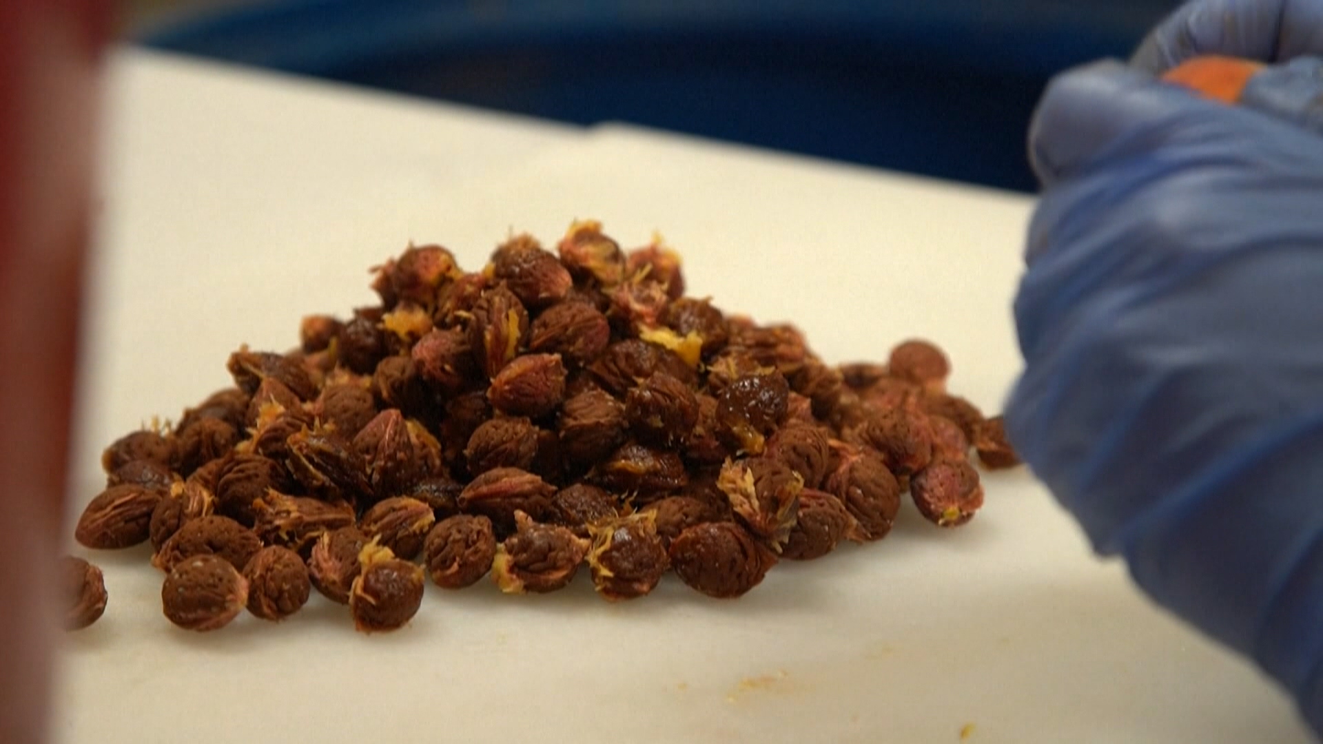 「它本來是綠色的。但來不及長大,在先前結霜的時候就陣亡了。」氣候變遷造成極端高溫,許多溫帶水果深受其害。像是在南法庇里牛斯山下,5月左右就遭逢乾旱,樹木缺水灌溉,杏桃果實掉滿地。