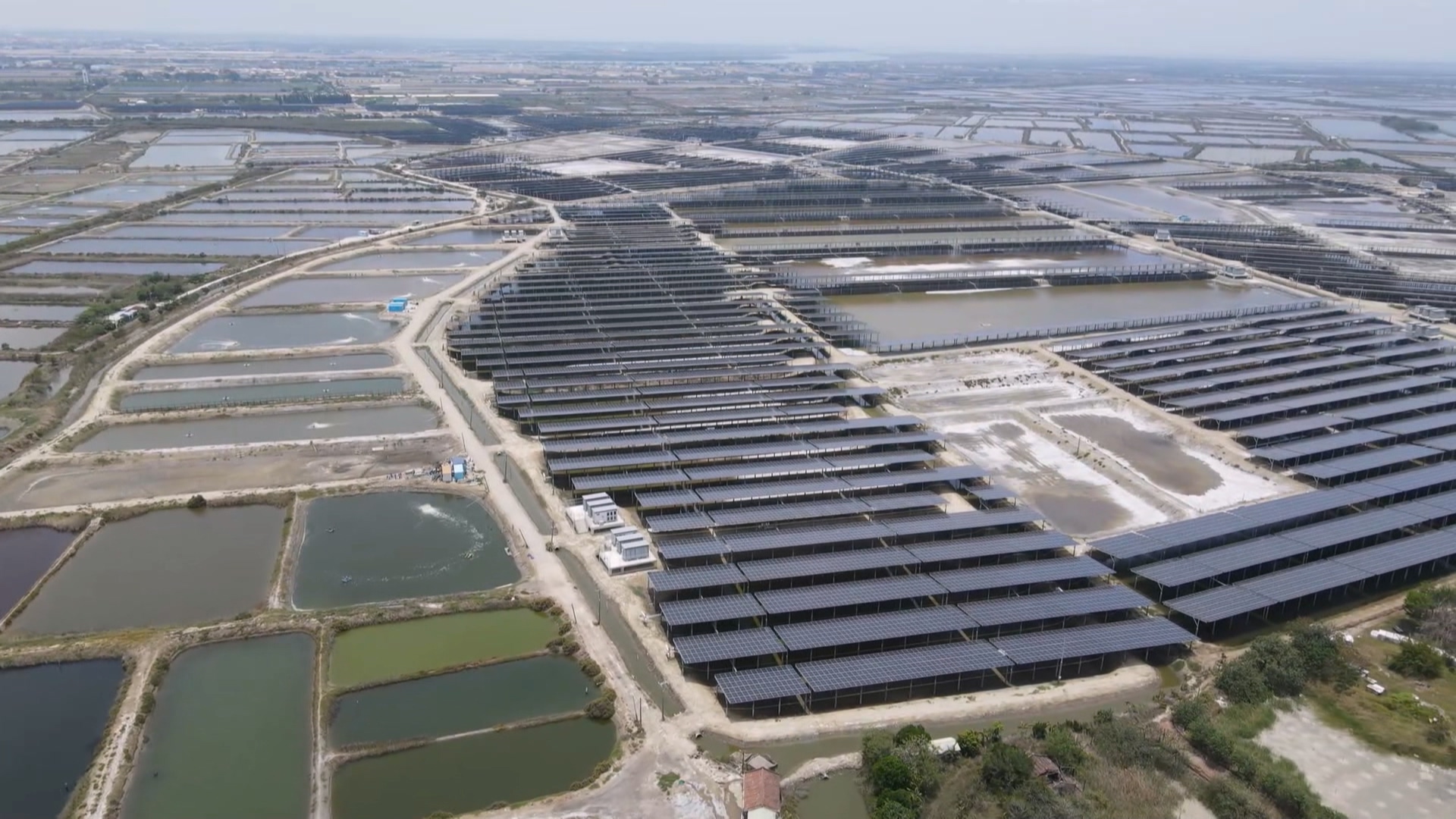 放眼望去,高達20萬片太陽能光電板就架設在魚塭上,面積更高達113公頃面積,也是國內最大的漁電共生案場。