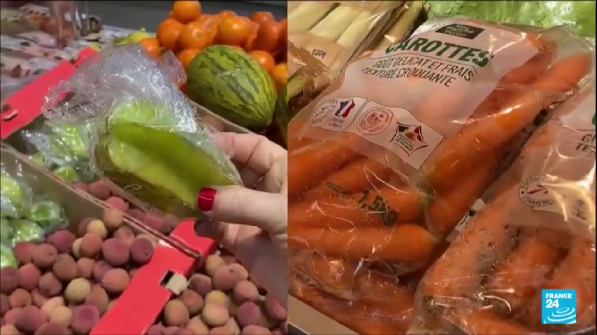 法國政策打擊塑膠製品則是按部就班,雷厲風行,去(2023)年元旦起,禁止餐廳使用拋棄式餐具,今年元旦更進一步,超市裡無論塑膠包膜、塑膠網袋,或是塑膠袋整組都好,這些讓生鮮蔬果看起來美觀、提起來方便、用過即丟的包裝,元旦起都不能繼續使用,否則將面臨最高4萬5千歐元的罰款。