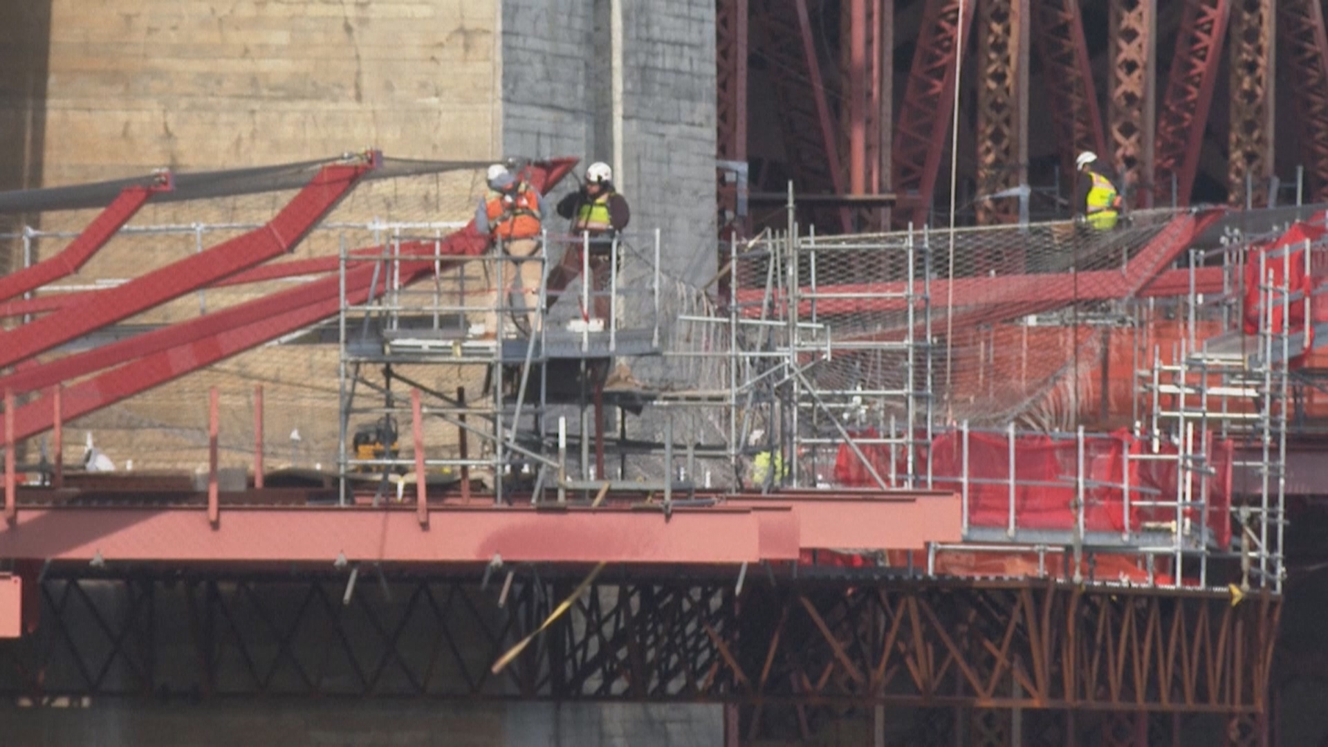 如今大橋兩側,長達2.7公里的防護網終於搭建完成,利用向外延伸大約6公尺的不鏽鋼和伸金屬網,形成阻擋人體墜落的防護措施。