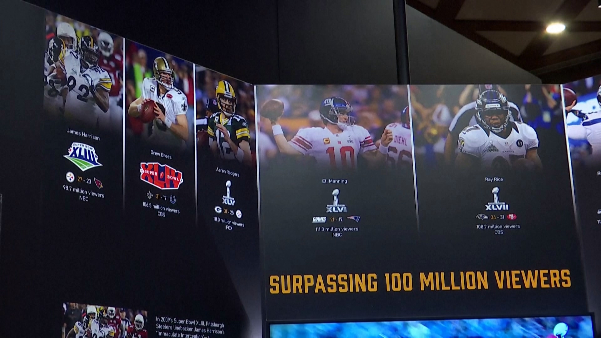 佩利博物館執行長蕾迪說:「家人朋友團聚觀賞比賽,我認為當人們瀏覽體驗展覽時,會有很多懷舊、連結和回憶,當人們回顧過去57屆超級盃,他們會沿著記憶的軌跡走下去。」