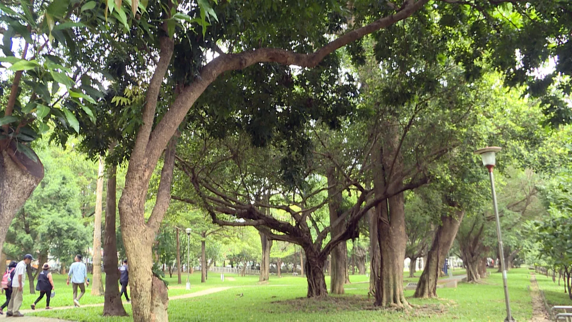 ลำต้นของผลไม้หลากหลายชนิด เติบโตสูงใหญ่ ต้นขนุนกำลังออกผล แต่ละลูกมีขนาดใหญ่มาก ข้างๆยังมีต้นน้อยหน่าและต้นบ๊วย ที่นี่คือสวนสาธารณะซื่อเม่า เขตซีถุน นครไทจง ชาวบ้านเล่าว่า มีคนมาแอบปลูกผลไม้ในสวนสาธารณะ ทำให้เกิดความยุ่งยากขึ้น