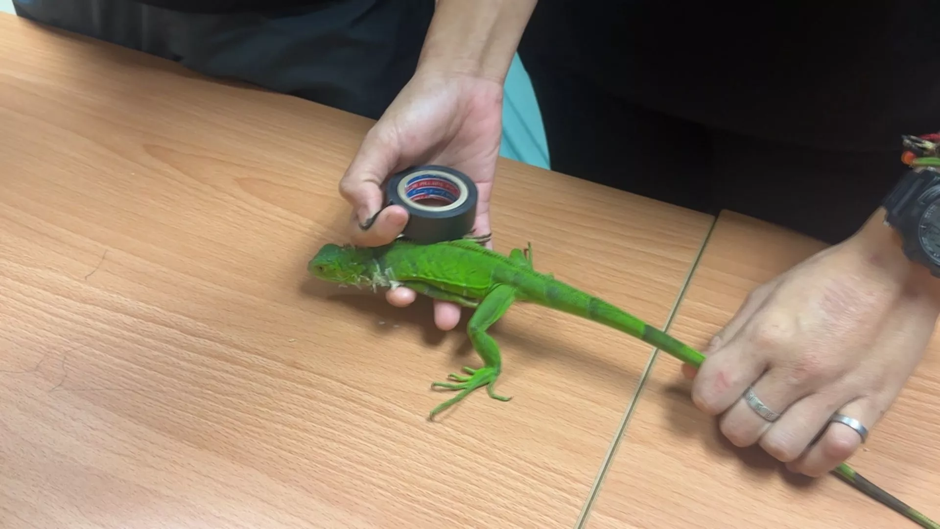 Pakar menangkap iguana hijau sambil menunjukkan cara mengikatnya. Iguana hijau yang semakin banyak di wilayah selatan Taiwan mendorong Kementerian Pertanian (MOA) untuk menerapkan kebijakan pelatihan bagi masyarakat umum. Mereka yang telah dilatih dapat menangkap iguana dan mendapatkan hadiah uang sebagai imbalan. Pelatihan pertama diadakan di Kaohsiung pada tanggal 30 sore, menarik lebih dari seratus peserta.