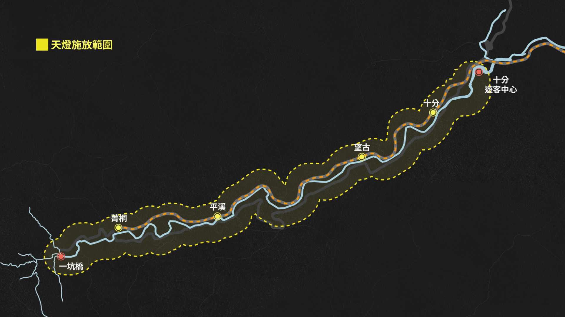 不過仔細看,施放範圍其實與鐵道重疊。然而《鐵路法》第57條規定,人車不得進入鐵道範圍。負責劃設施放區域的新北市消防局表示,合法施放區確實包含平溪線鐵道,但也強調民眾仍不得在鐵軌上施放天燈,「因為那樣會違反交通部鐵道局的相關規定。」