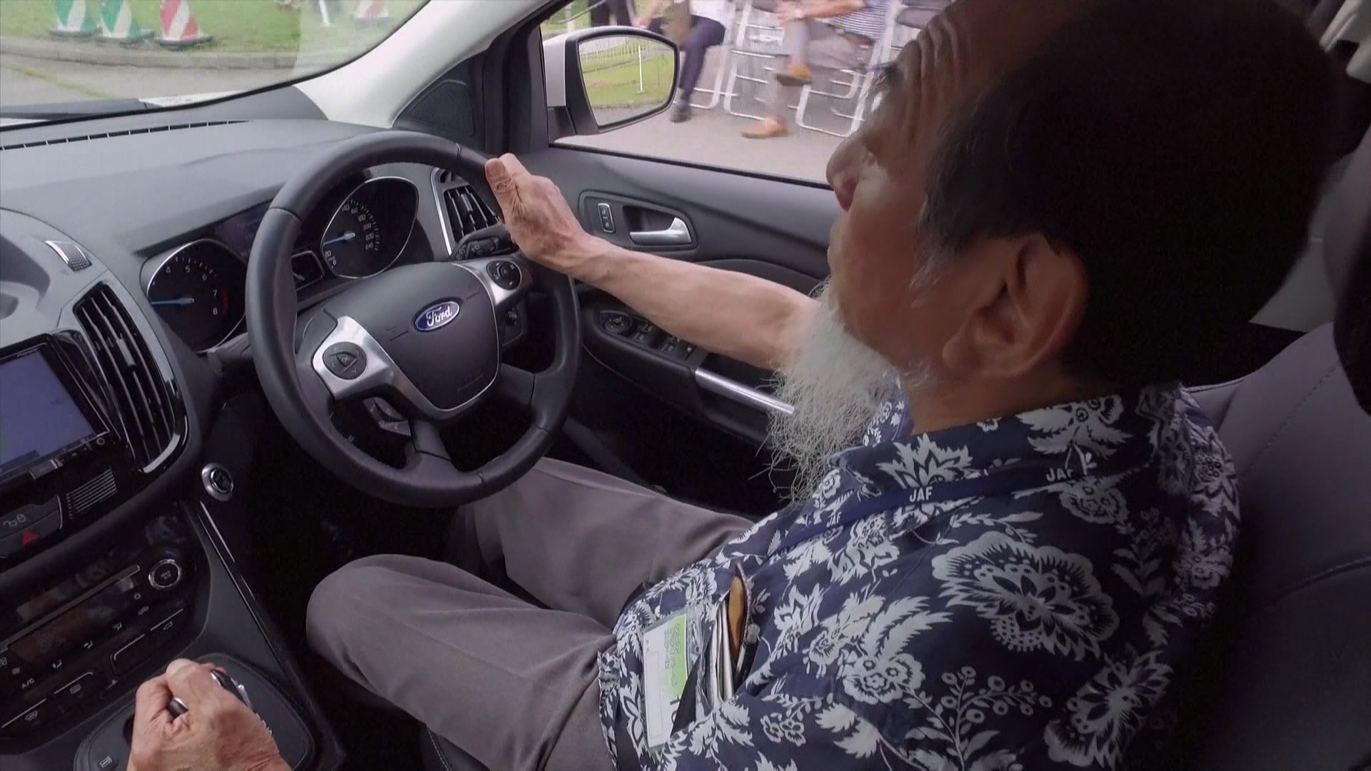 高齡駕駛人友田純惠說:「我會小心的,小心開車的速度。好開心唷!」