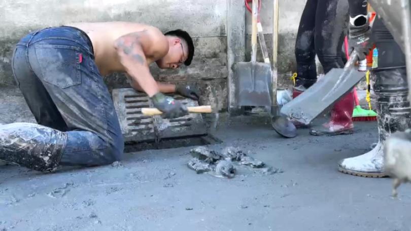 怪手動工,在整片已經乾硬掉的泥地上鑿出一個大洞、終於讓底下的路面重見天日,堆積的淤泥深度厚達1.5層樓高度,光復鄉洪災進入第13天,依然有6人失聯。