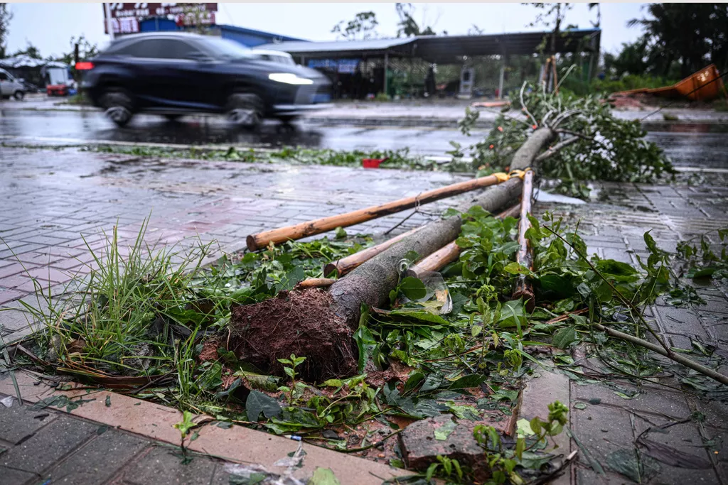 中度颱風麥德姆週日(5日)下午2時50分左右,在廣東西南部湛江市徐聞縣沿海登陸,為廣東和鄰近的海南省帶來強風豪雨,包括樹木、車輛和招牌都被吹倒,萬物齊飛的景象,有如電影特效情節。