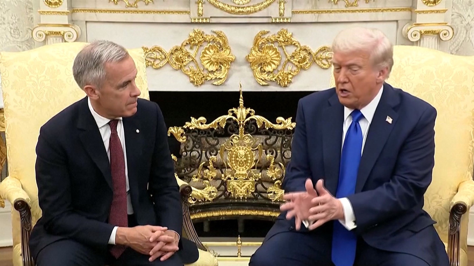 美國總統川普說:「我們在同一門生意上競爭,卡尼想製造汽車,我們也想。我們正在互相競爭。美國的優勢是我們的市場大,所以這是很大的優勢。」