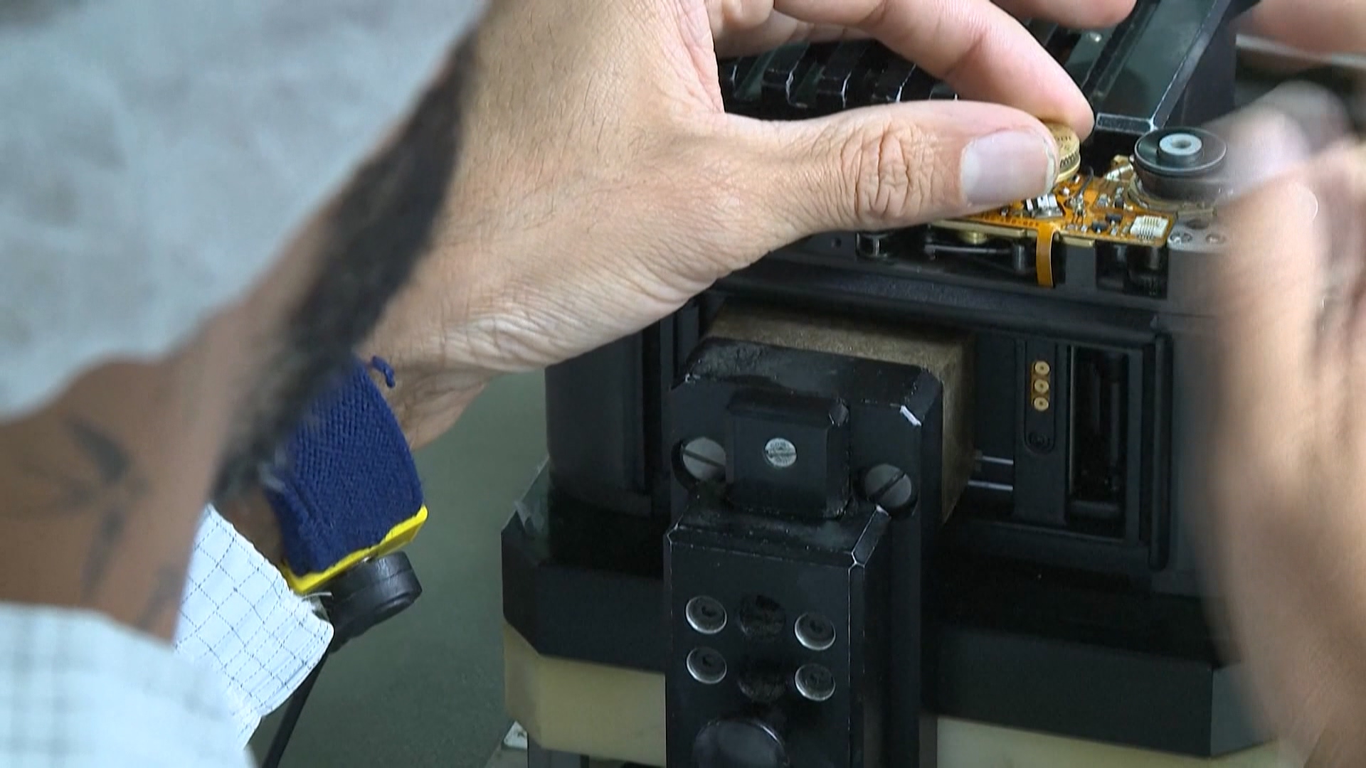 法新社記者走訪了設在葡萄牙的生產中心,70名勞工在無塵組裝室,以精密螺絲起子和防靜電鑷子,將600多個零件組裝成相機;另一個房間可以看到作業人員拋光鏡片,然後黏合、上亮漆。