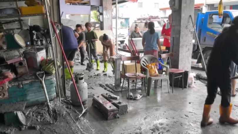 各校重建進度持續推進,13日恢復實體上課的光復商工,學生一到學校就投入清理行列,部分學生因制服被泥水淹沒,只能穿著便服到校。