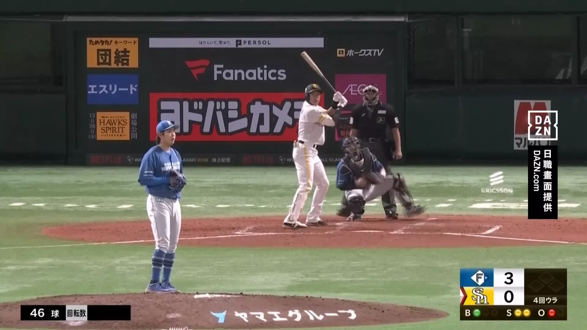球賽主播表示,「吊中了變化球,讓打擊的海野隆司遭到三振。」