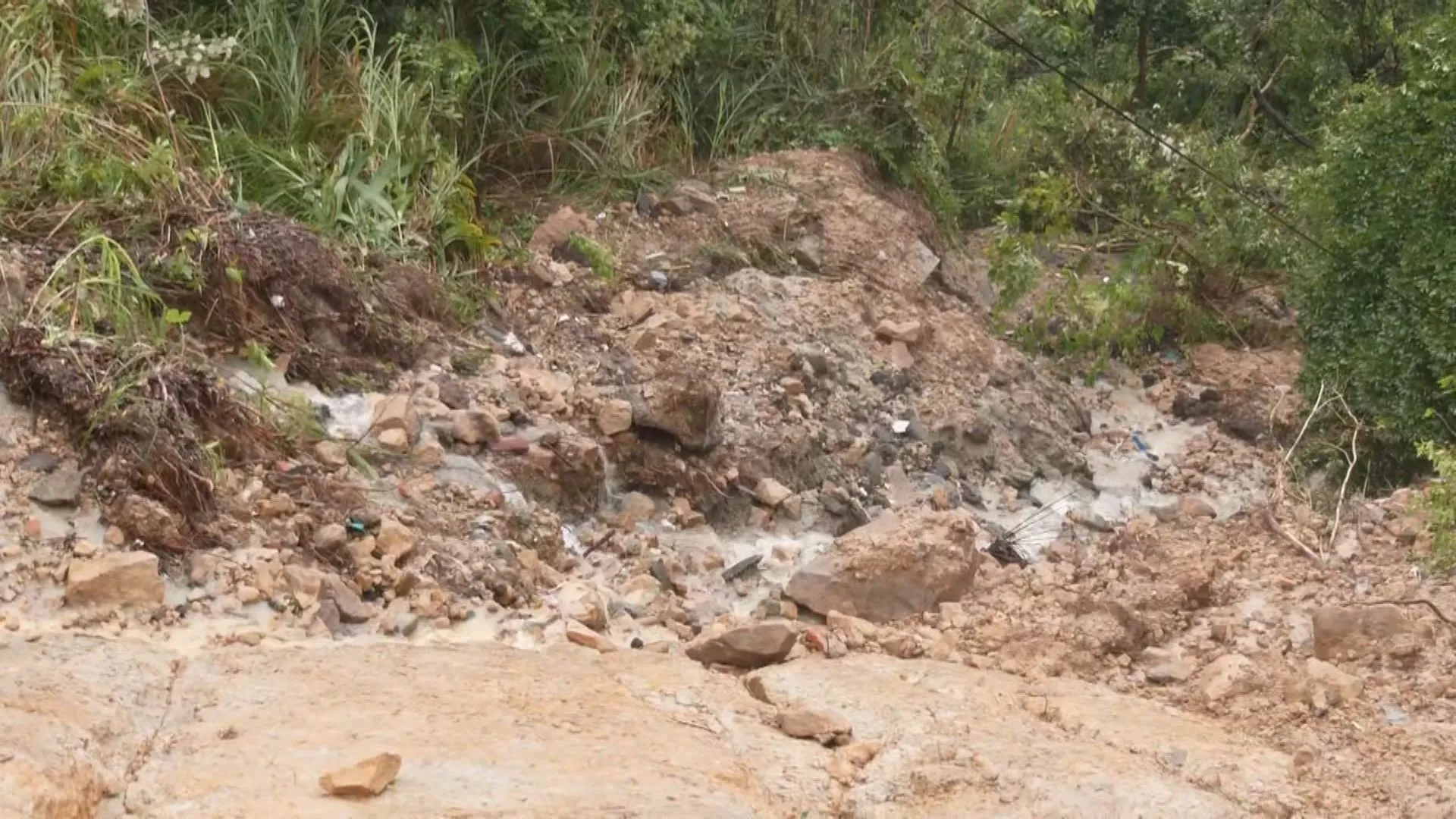 Sạt lở ven sườn dốc Xizhi, nước mưa xói mòn gây sụp lún đường