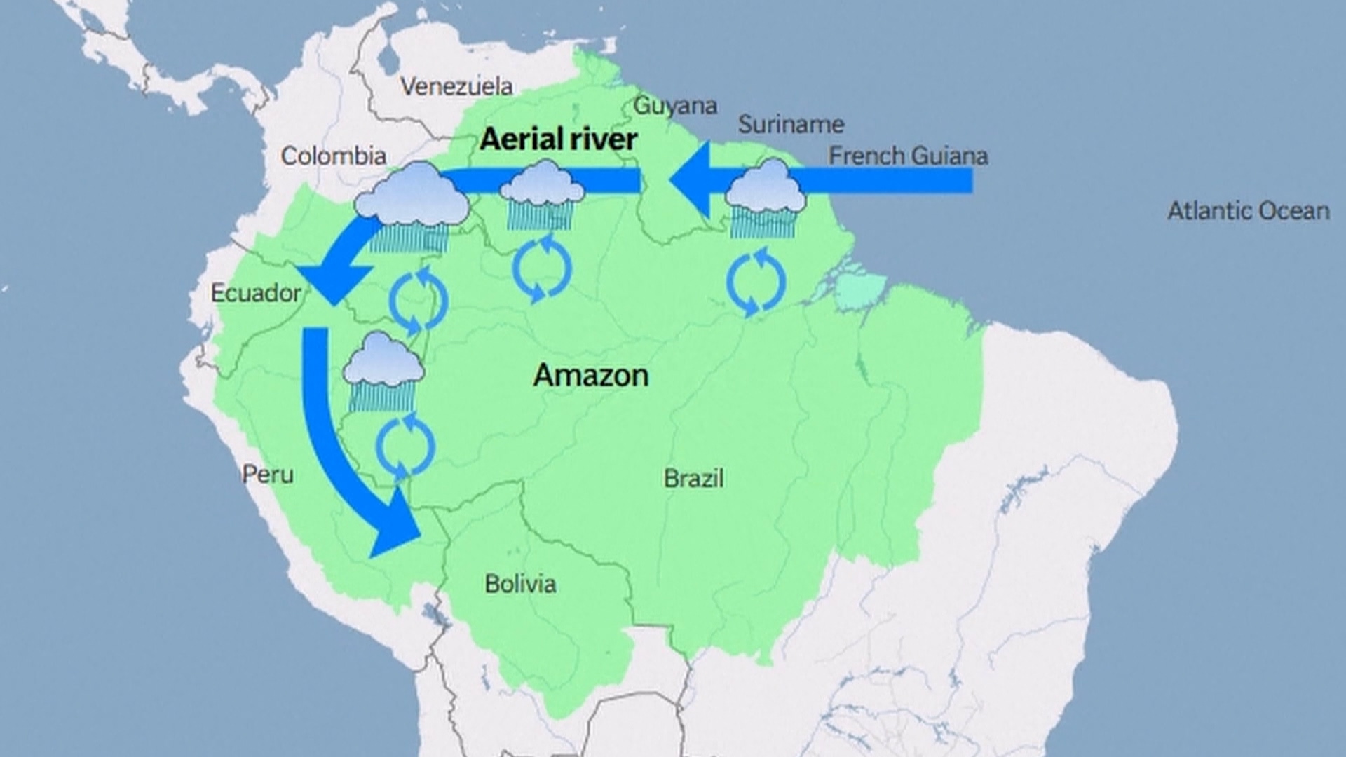 「飛河」是形成並維繫亞馬遜雨林生態的重要元素,飛河是從大西洋向西橫越亞馬遜雨林、由樹木蒸散所形成的水氣流,能將雨水帶往西部內陸與安地斯山區,是維護亞馬遜降雨與區域水循環的重要機制。