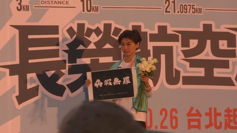 空服員工會聚集長榮馬提訴求 穿越賽道貼標語一度遭制止