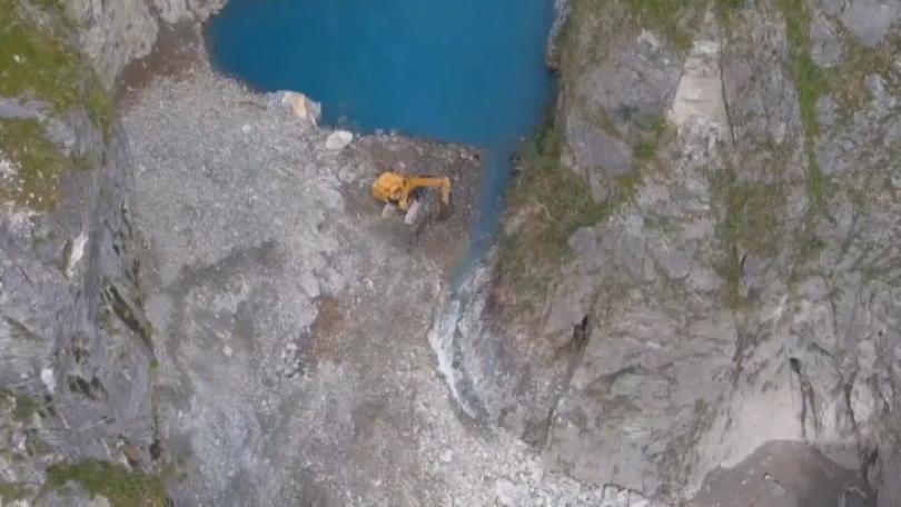 燕子口堰塞湖壩體開挖引流 發細胞簡訊示警勿靠近河道